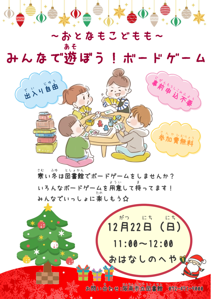 寒い冬、温かい図書館でボードゲームをして盛り上がりませんか♪