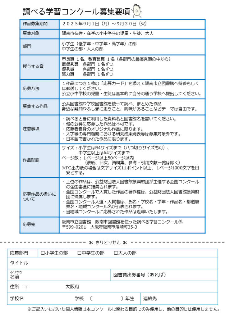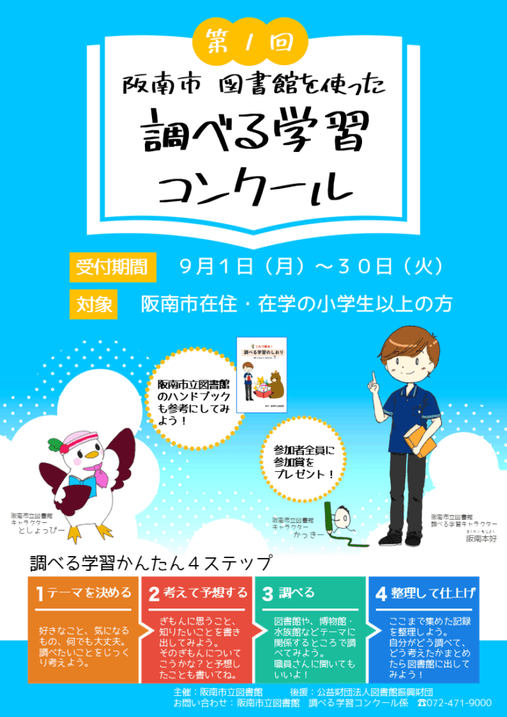 阪南市立図書館では、「図書館を使った調べる学習コンクール」の地域コンクールを開催します!