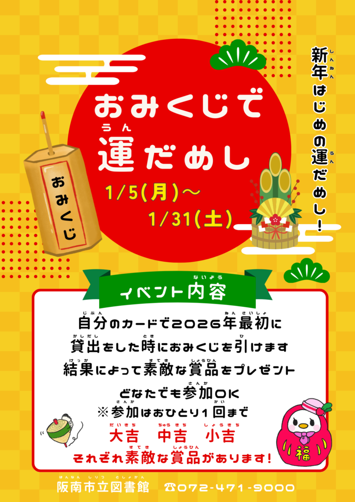 自分のカードで、2026年最初に貸出をした時におみくじを引けます。