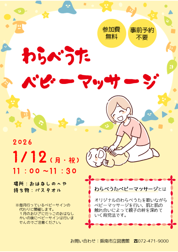 2026年1月12日(月・祝)11時~11時30分まで、図書館内おはなしのへやで