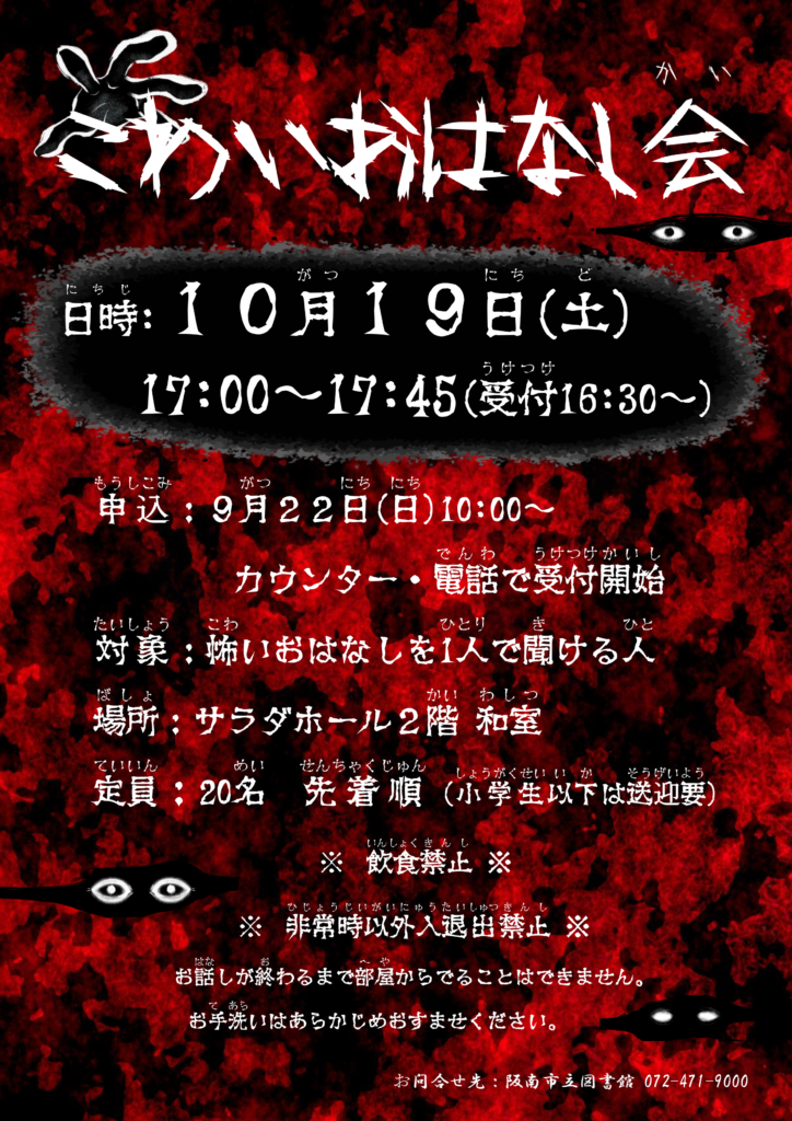 10月19日(土)に『こわいおはなし会』を開催します!