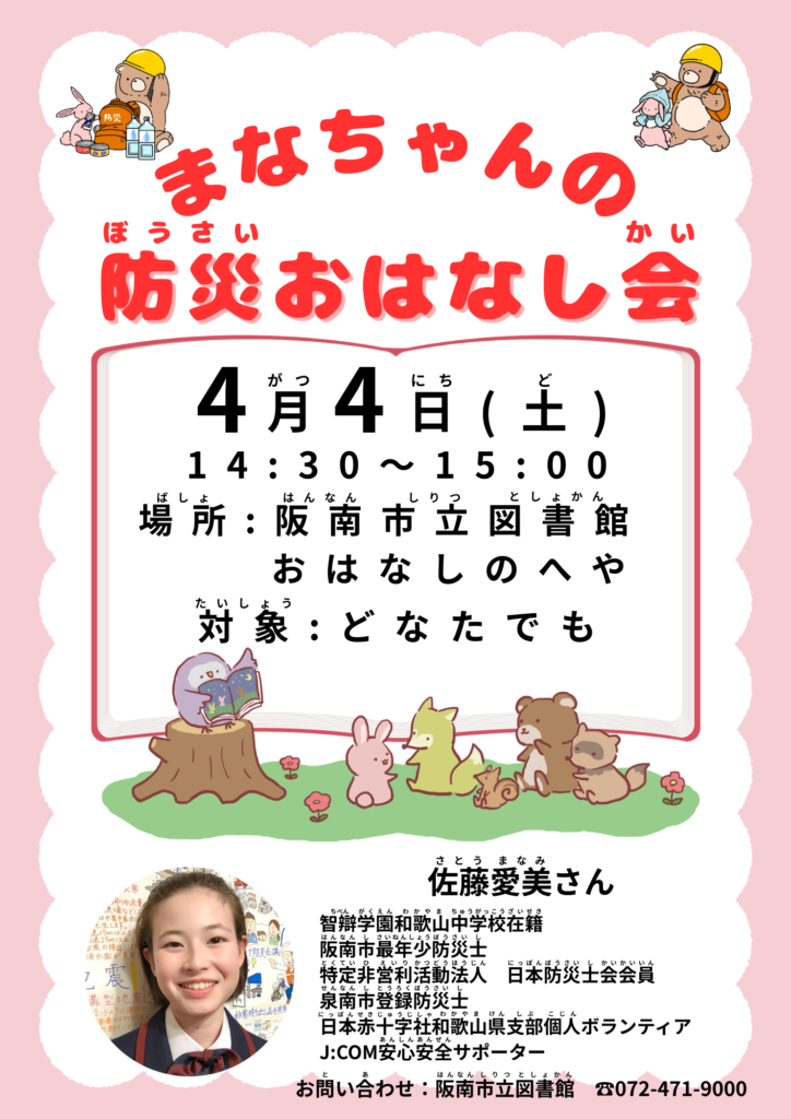 阪南市最年少防災士・佐藤愛美さんによる防災のおはなし会を開催します!